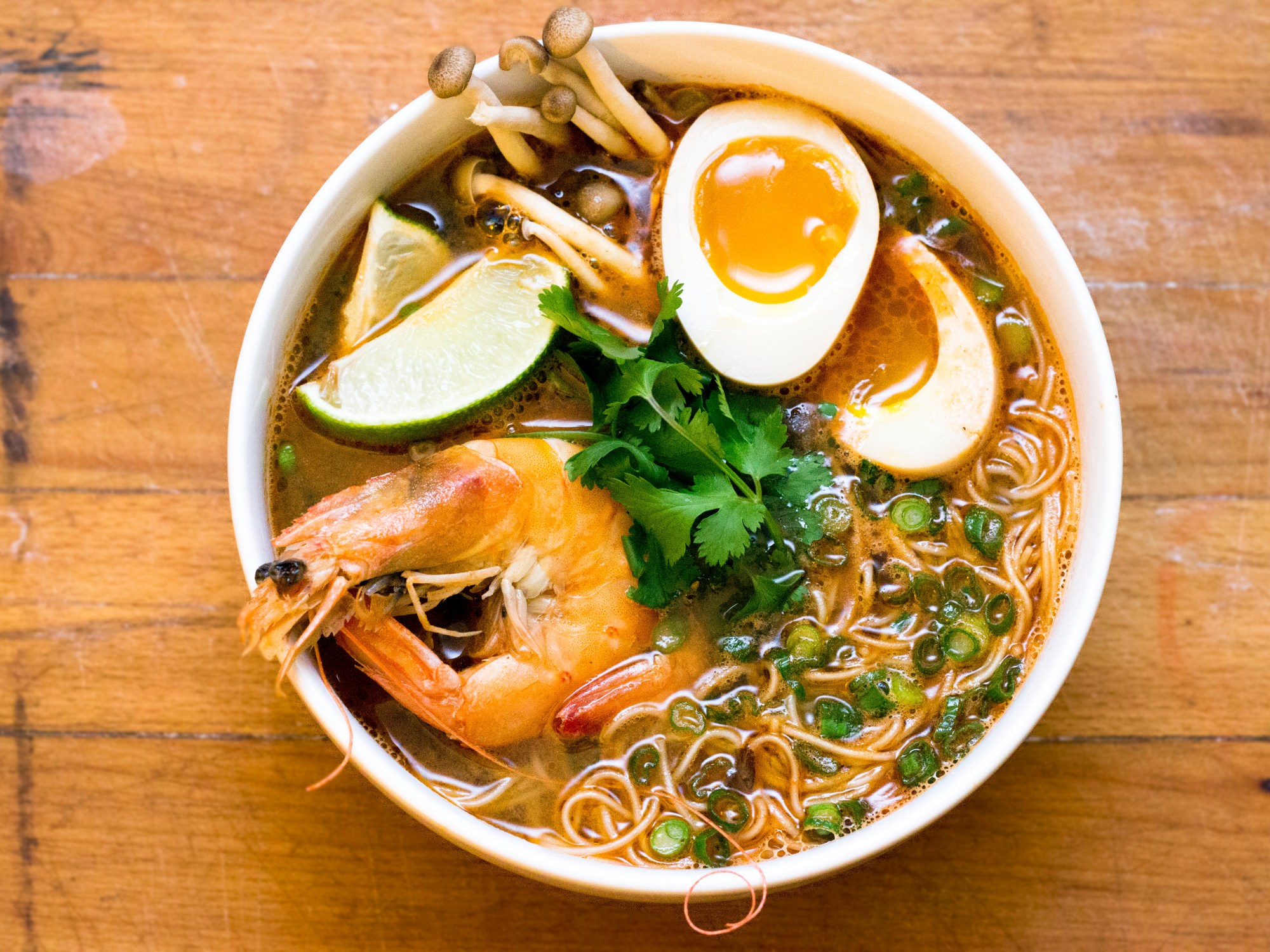 I love ramen and being 1/4 Japanese I take pride in making it. From stock to noodles, egg to shrimp, this baby is all mine. Totally satisfying!
